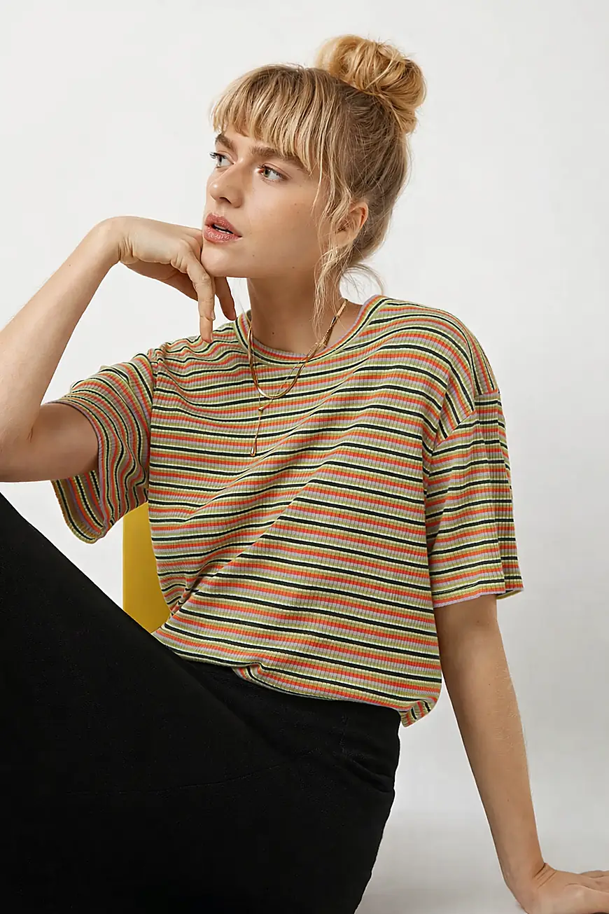Het King Louie T-shirt Mistral is een comfortabel en speels item dat moeiteloos kleur toevoegt aan je outfit. Dit T-shirt heeft een moderne oversized fit en voelt heerlijk zacht aan dankzij de duurzame LENZING™ ECOVERO™ viscose. De fijne stretch zorgt voor extra draagcomfort, terwijl de streepjesprint een vrolijke, retro-achtige uitstraling geeft die typisch is voor King Louie.