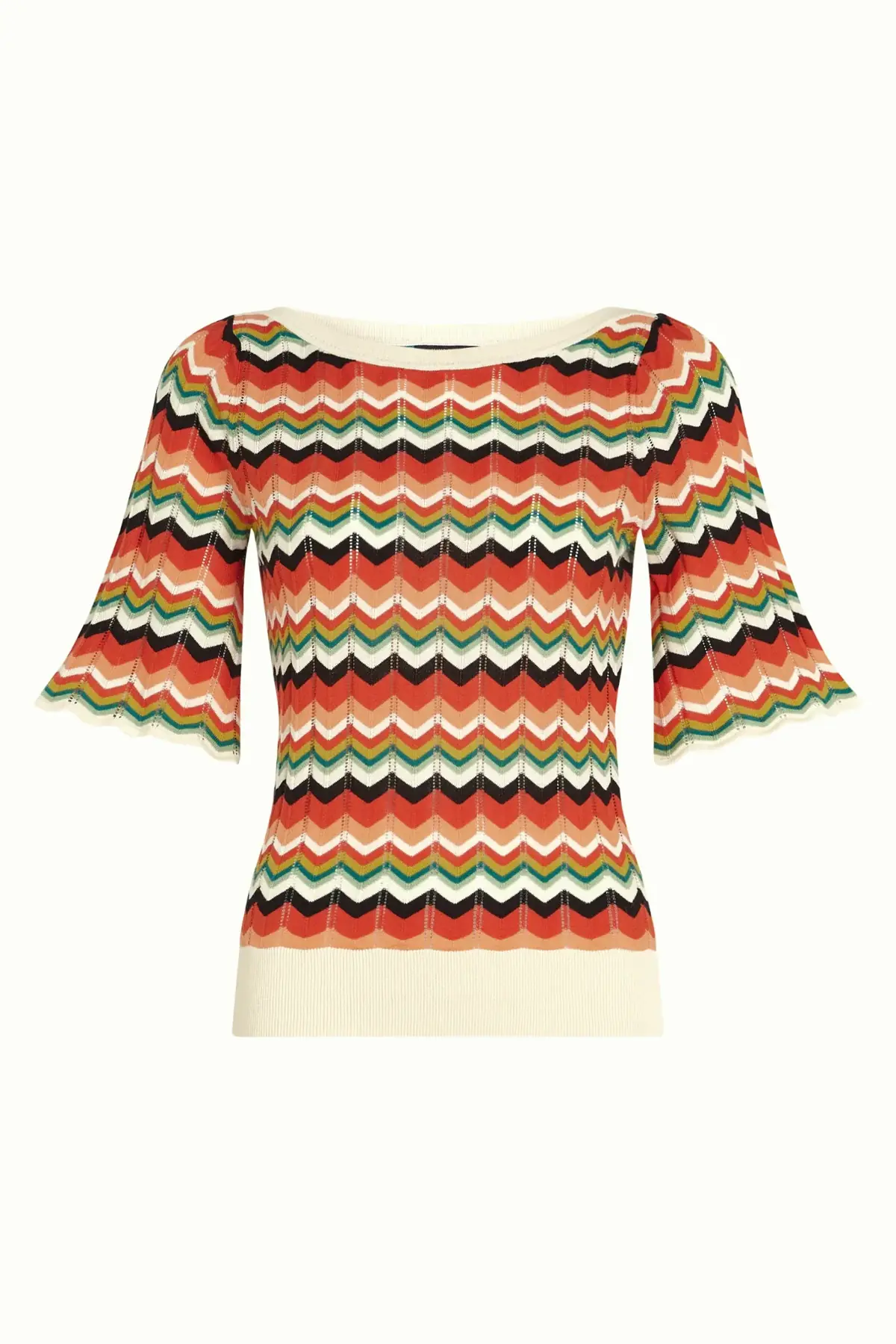 Zomerse King Louie knit top met zigzagpatroon en boothals van biologisch katoen.